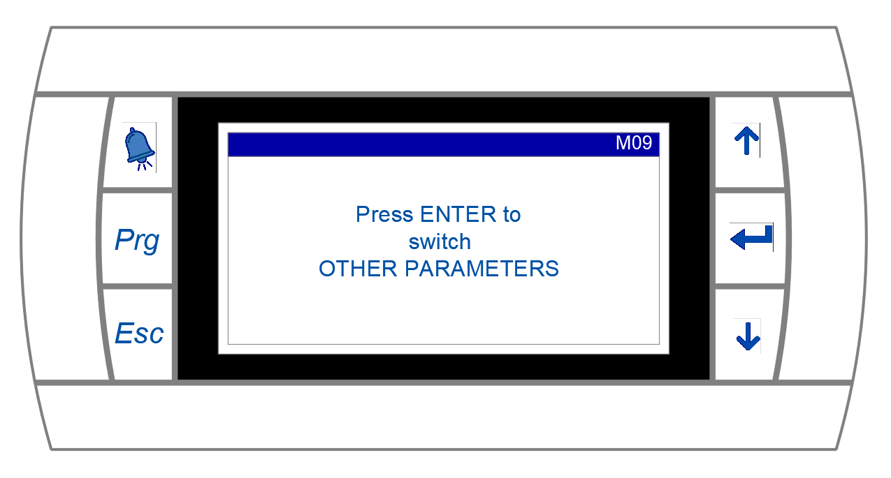 To do the configuration, Press on the Program (Prg) button and enter the password (ask your dealer for the password) and press enter. Navigate to M09 (OTHER PARAMETERS) and press enter. |