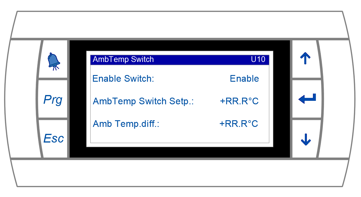 The automatic switch from Heating to Cooling can be automated via the HP integrated ambient temperature switch. For this option to be enabled, Ambient temperature switch needs to be enabled and a seasonal temperature set point and a dead band (between seasons) need to be defined. Under User mask (M04):